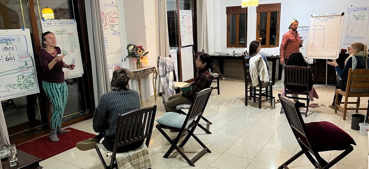 Eleven people turned the Cavitation Bridgehouse upside down over the three days of Christmas by struggling and flying through a Practice Kaos Expand The Box (P-K-ETB) Training together. New and old trainers explored, practised and, above all, went on a parallel play to deliver maps memetically and with high-level fun. Anne-Chloé Destremau has shared generously several legends about P-K-ETB in thePossibility Creation Village Telegram Group.