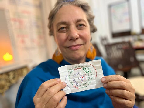 Archetypal generosity lies in collaborative communication. Someone is talking in the car and another person asks “do you know about this book”, and you answer. Or when I don't get a word in English and I stop and ask what it means, I’m taking a stand to do whatever it takes to be present here with you. I’m being generous. The purpose is not understanding, the purpose is asking whatever the next question is. The next word or sound to be said so the person has the wind to keep rolling the space and the ball does not stop. In an adult and archetypal intimacy space all people involved are working to not let the ball drop. Like in the pinball game. When the ball drops down through the hole, then the game is over. When each person in a circle is able and willing to be the source of discovery, then there is no Impossibility. Because whenever something that is wanted and needed the person will discover and create new possibilities. How to develop the skill to discover and source what is wanted and needed from my lineage.