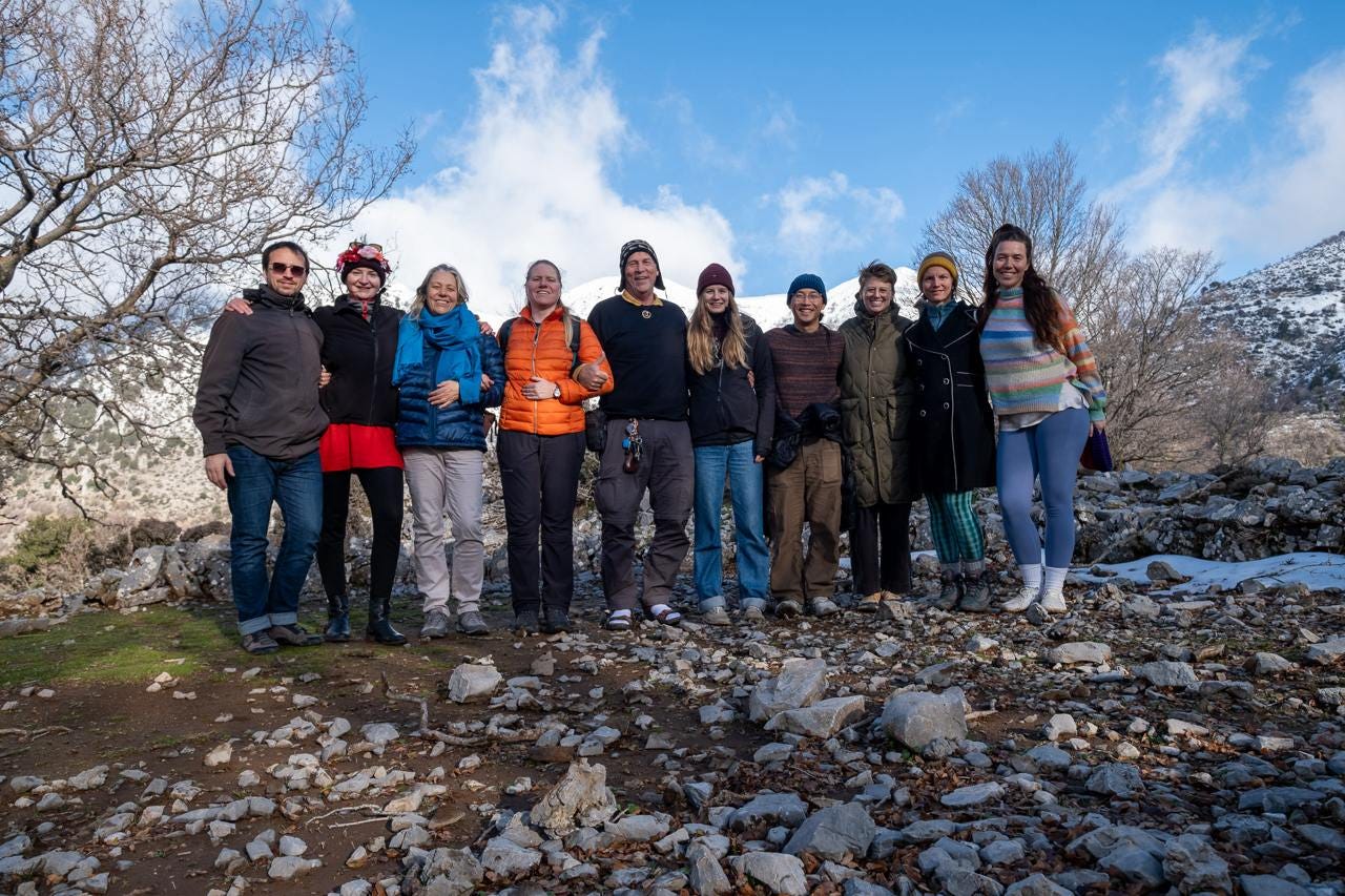 Meredith’s presence, for example, brings the gift of curiosity and asking questions that open whole new territories and new facets to relate. Thursday was her birthday. We were driving back home, after a nourishing day on the snow mountains in Crete. At the car she asked me “what secrets are you keeping away from us?” My answer was “I think I’m socially weird and awkward when I’m with you in this group”. Tears started dropping down my eyes. This question was a present to me because it opened a gap for me to be more present and to decide that from there on my general, over all, background purpose in Life is to enjoy my Life. I let go the loyalty to my family’s values that life has to be sacrificed and measured.