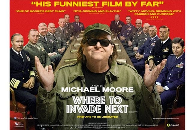 This isn’t about Sophia not wanting to pay. I am talking about the kind of individualism that says “well there is a problem but it's not exactly my problem, you do what you want, I’ll make it so it doesn’t affect me.” I did not get fully what the consequences of this individualism were until I watched a documentary here by Michael Moore called Where to Invade Next. Where to Invade Next is funny and tragic. Please watch it especially if you were born in America, or if you look up to America. In Where to Invade Next, Moore travels around a variety of countries (mostly Europe) looking for what is valuable about their cultures to claim for America. These are cultural ideas like serving healthy lunches in school, guaranteeing many weeks of paid vacation (there is 0 guaranteed by law in the USA), having willingness to prosecute bankers after the 2008 financial crisis (yes, Iceland actually did this), rehabilitation for lawbreakers rather than retribution and punishment, and more. I finished Where to Invade Next sad, and knowing how fucked up the politics and systems are in America, angry at how unlikely any of these good ideas would ever be given a chance to grow in America.